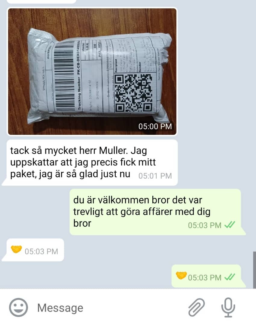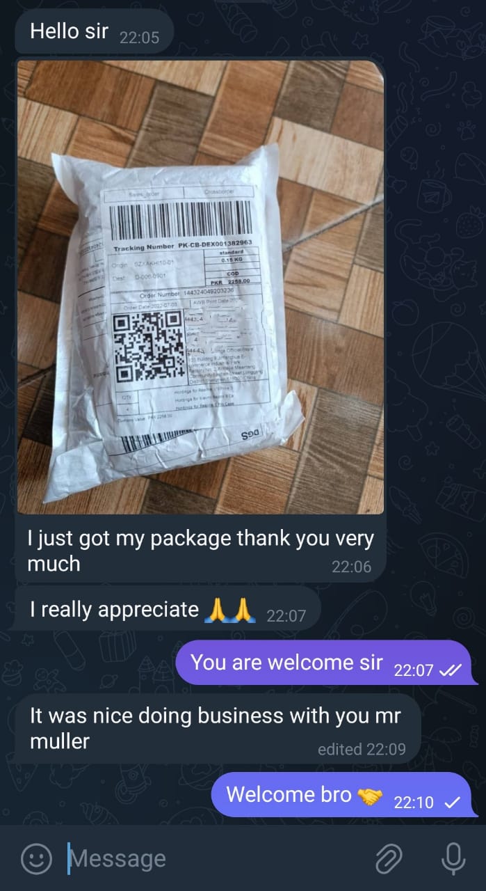 Nuestro éxito se basa en la confianza, la constancia y la satisfacción del cliente. Cada testimonio a continuación refleja experiencias reales de clientes que nos han elegido como su proveedor de referencia para productos químicos puros, compuestos de grado de investigación y un servicio confiable. Tanto si es su primera compra como si es un socio a largo plazo, valoramos sus comentarios y nos comprometemos a superar sus expectativas.